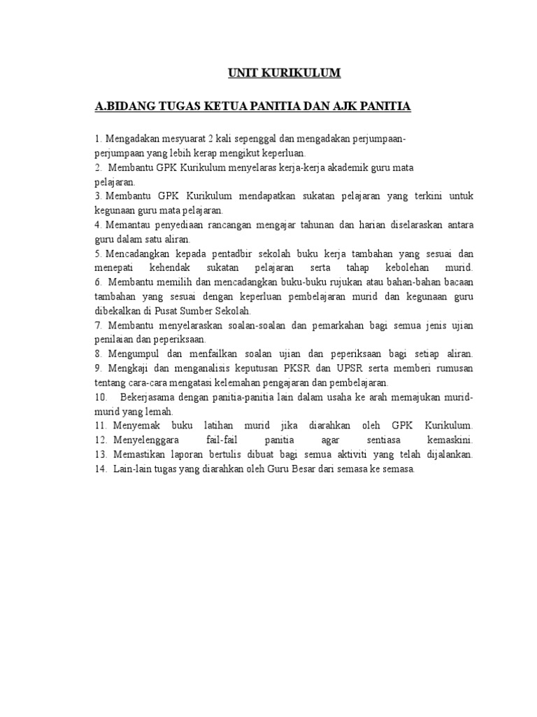 Rosmah Senarai Tugas Ketua Panitia Mata Pelajaran