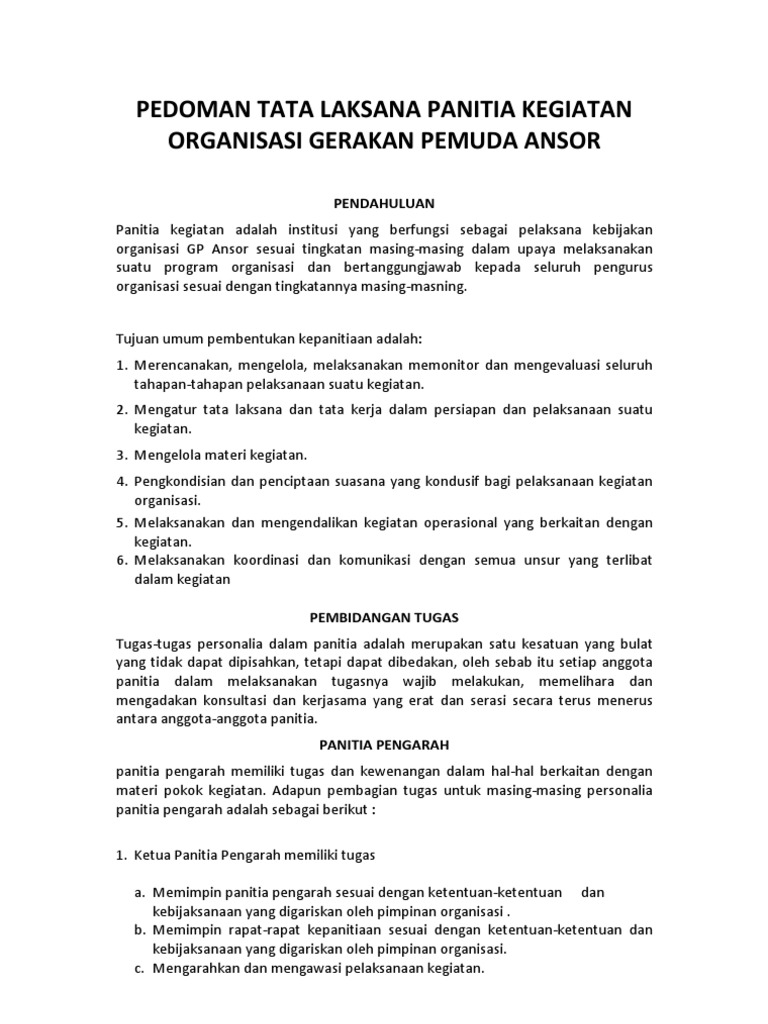 Pedoman Tata Laksana Panitia Kegiatan