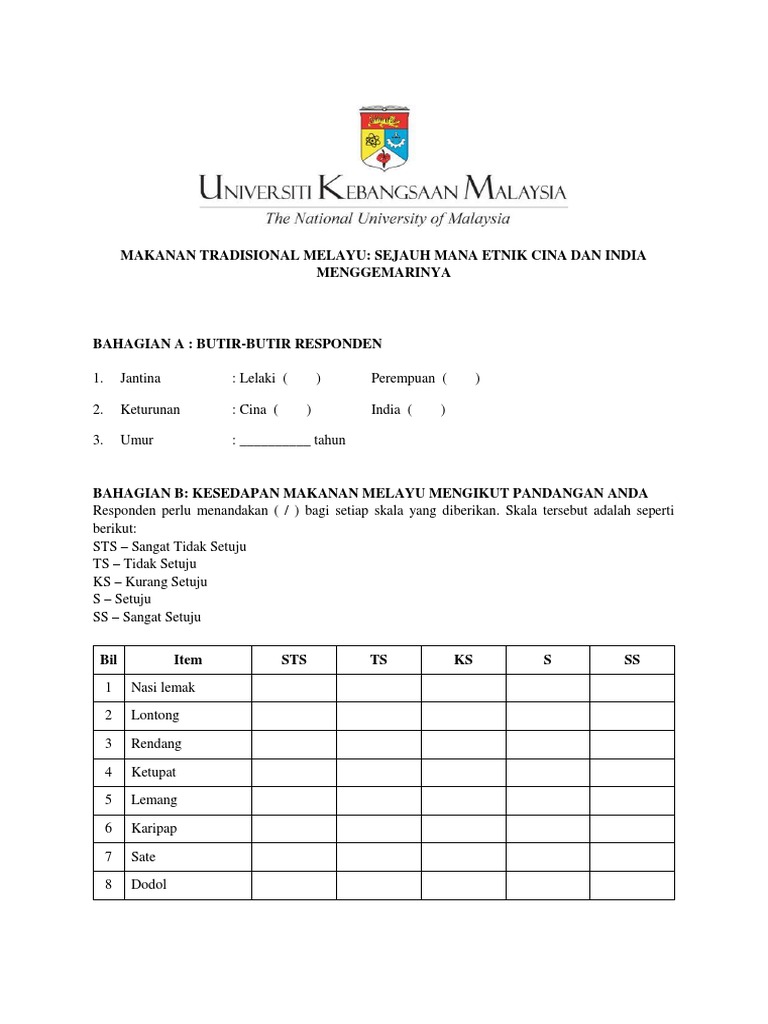 Borang Soal Selidik Ctu Docx Borang Soal Selidik Hubungan Etnik Ctu 555 Semester Ii Sesi 2018 2019 Makluman Kepada Respondan Soal Selidik Ini Adalah Course Hero