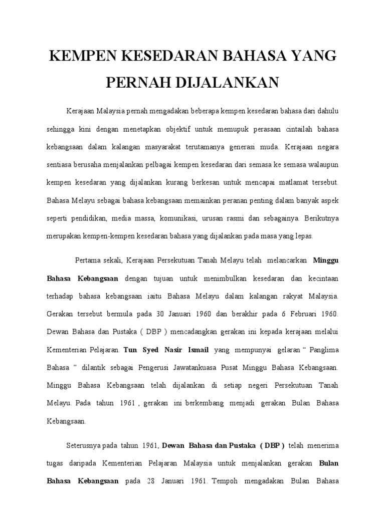 Kempen Kesedaran Bahasa Yang Pernah Dijalankan