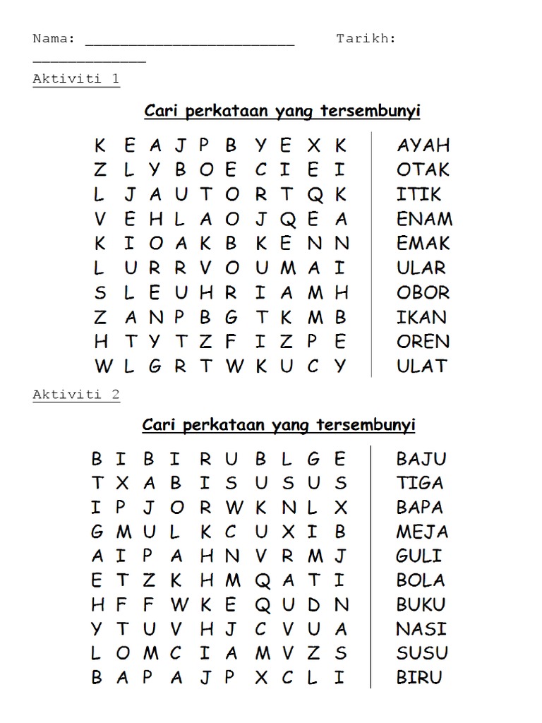 Permainan Bahasa Cari Perkataan Pdf Document