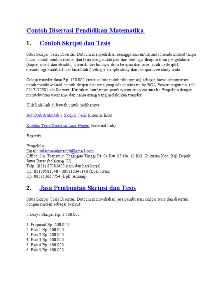 Contoh Disertasi Pendidikan Matematika