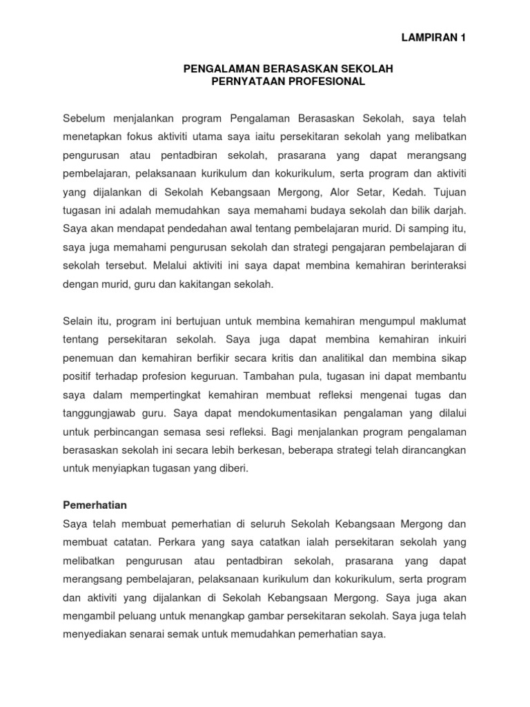 Contoh Penulisan Laporan Pengalaman Berasaskan Sekolah