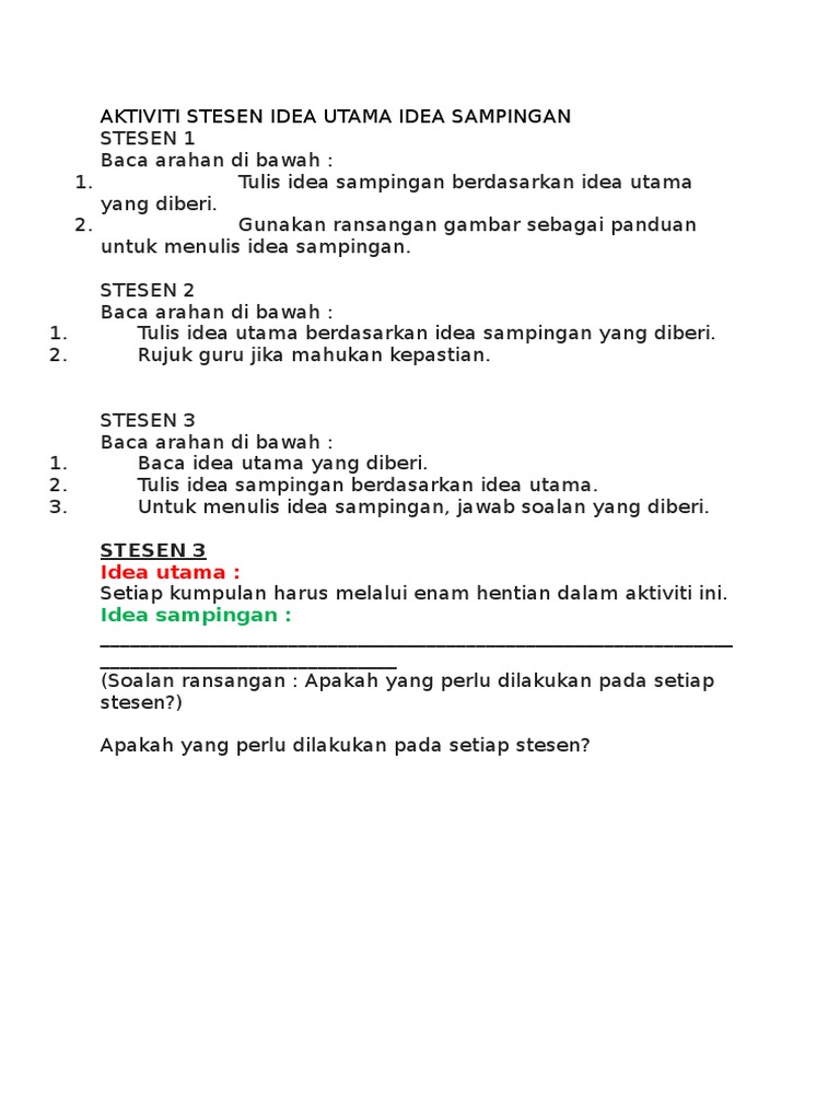 Aktiviti Stesen Idea Utama Idea Sampingan