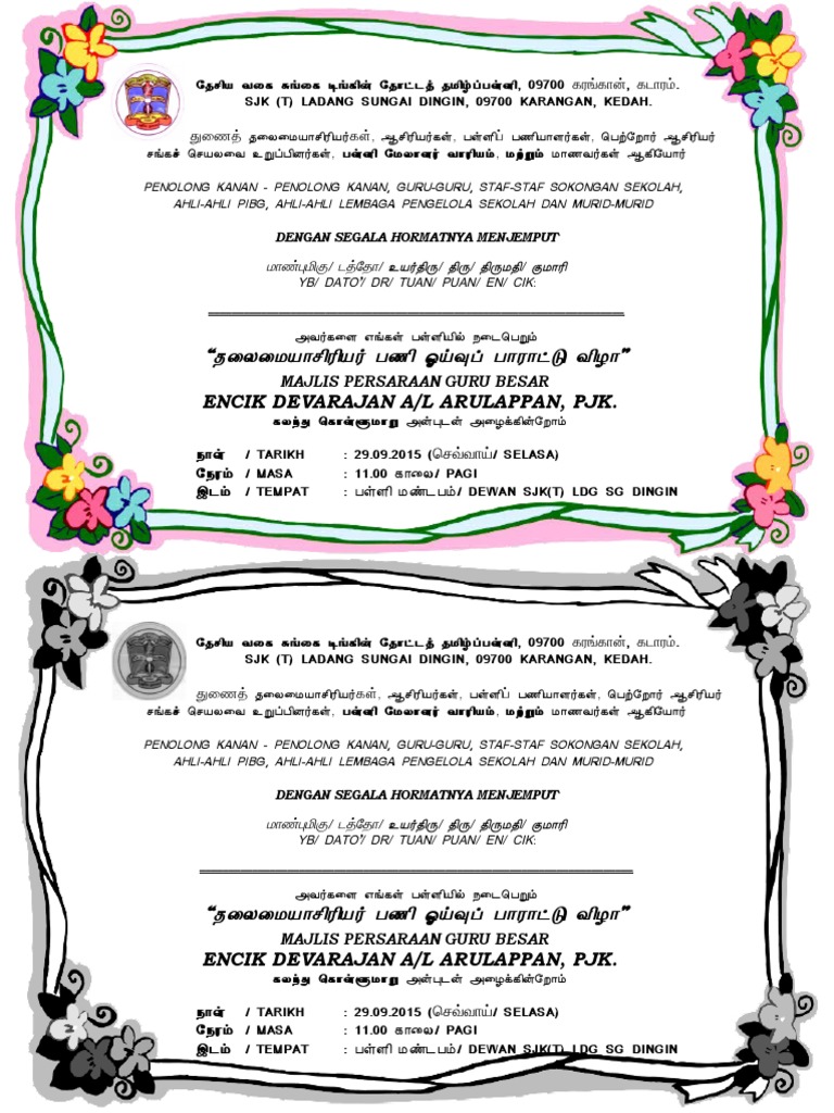 Contoh Kad Jemputan Persaraan Guru Besar