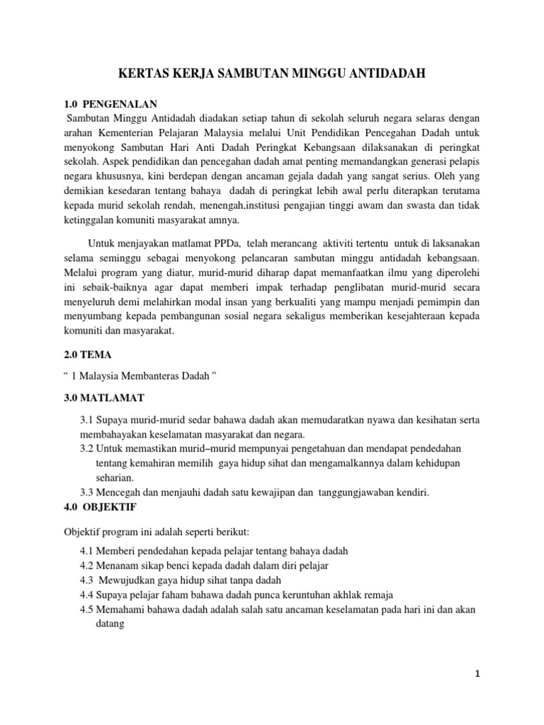 Doc Kertas Kerja Bulan Antidadah Sk Meru 2 Jalan Paip Academia Edu