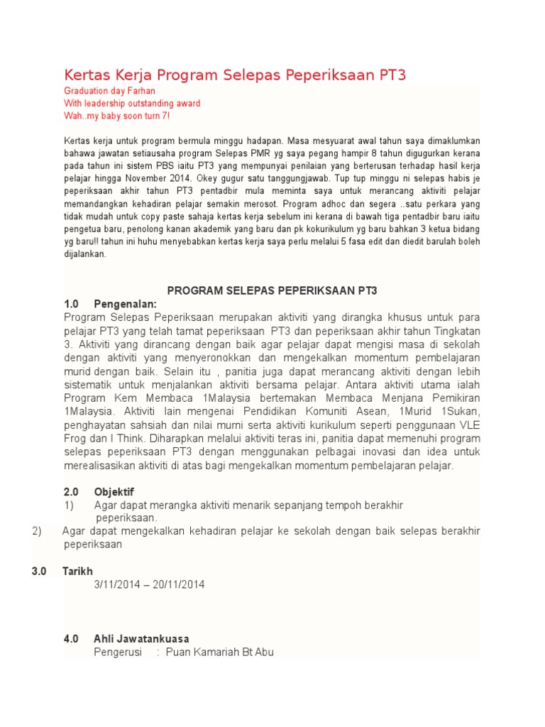 Kertas Kerja Program Selepas Peperiksaan Pt3 Docx Document