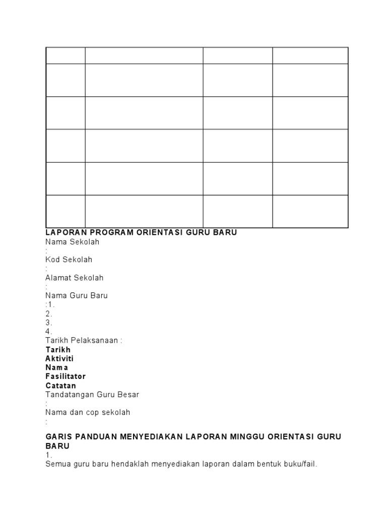 Format Laporan Program Orientasi Guru Permulaan Ju Pdf Document