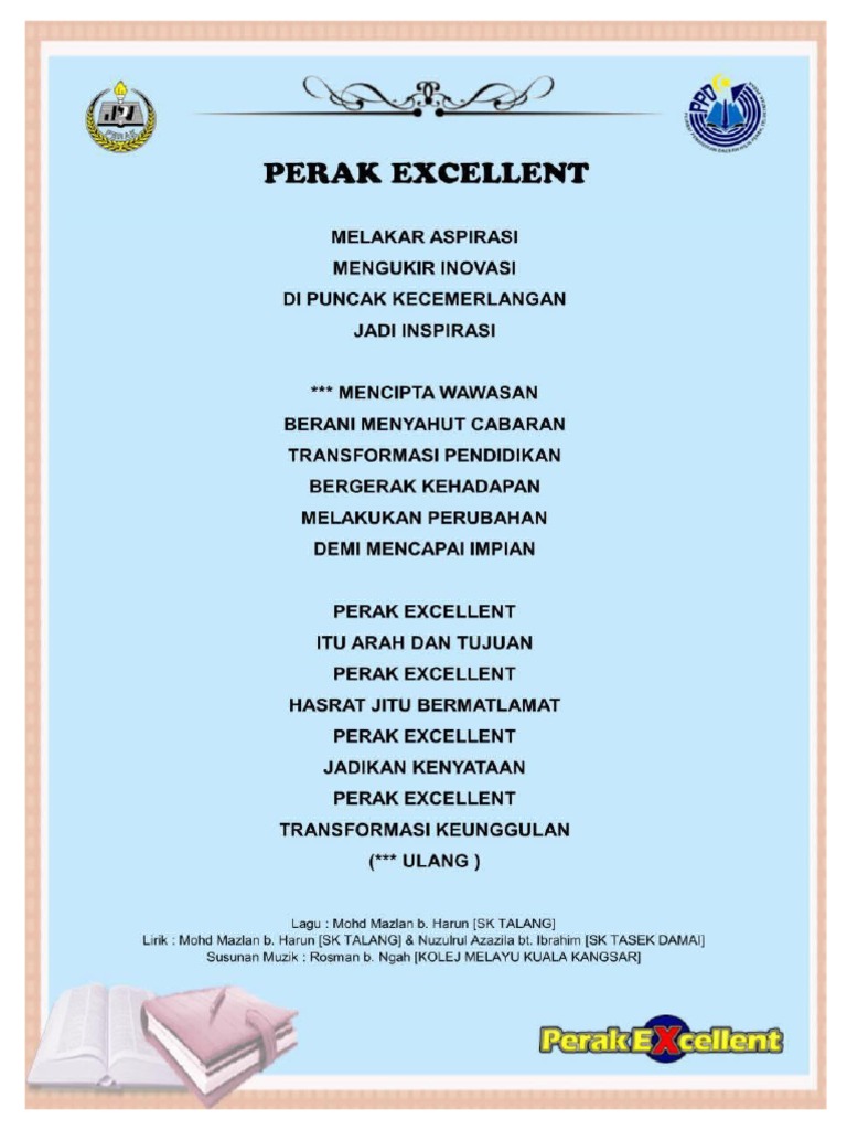 Pejabat Pendidikan Daerah Hilir Perak Lirik Lagu Perak Excellent