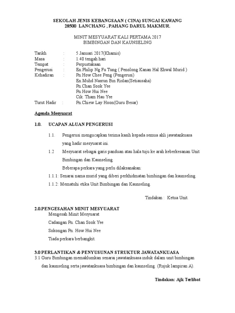 Contoh Minit Mesyuarat Kelab Bimbingan Dan Kaunseling