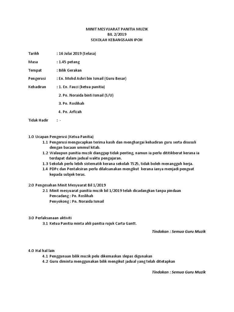 Doc Minit Mesyuarat Panitia Muzik Kali Pertama Hasni Abdul Hamid Academia Edu