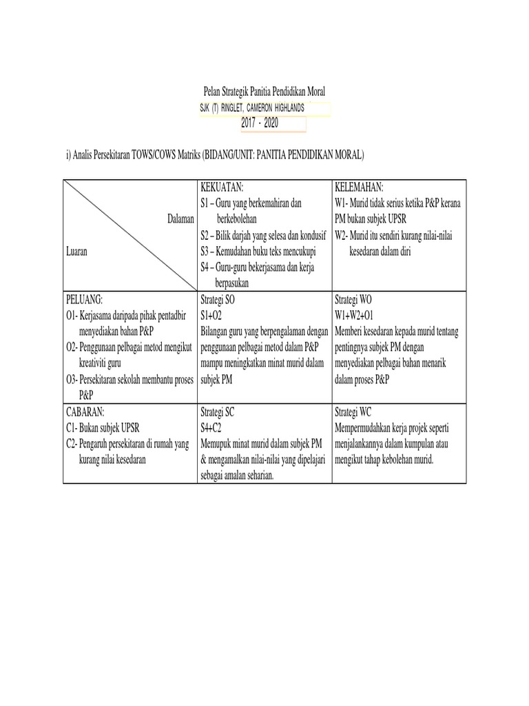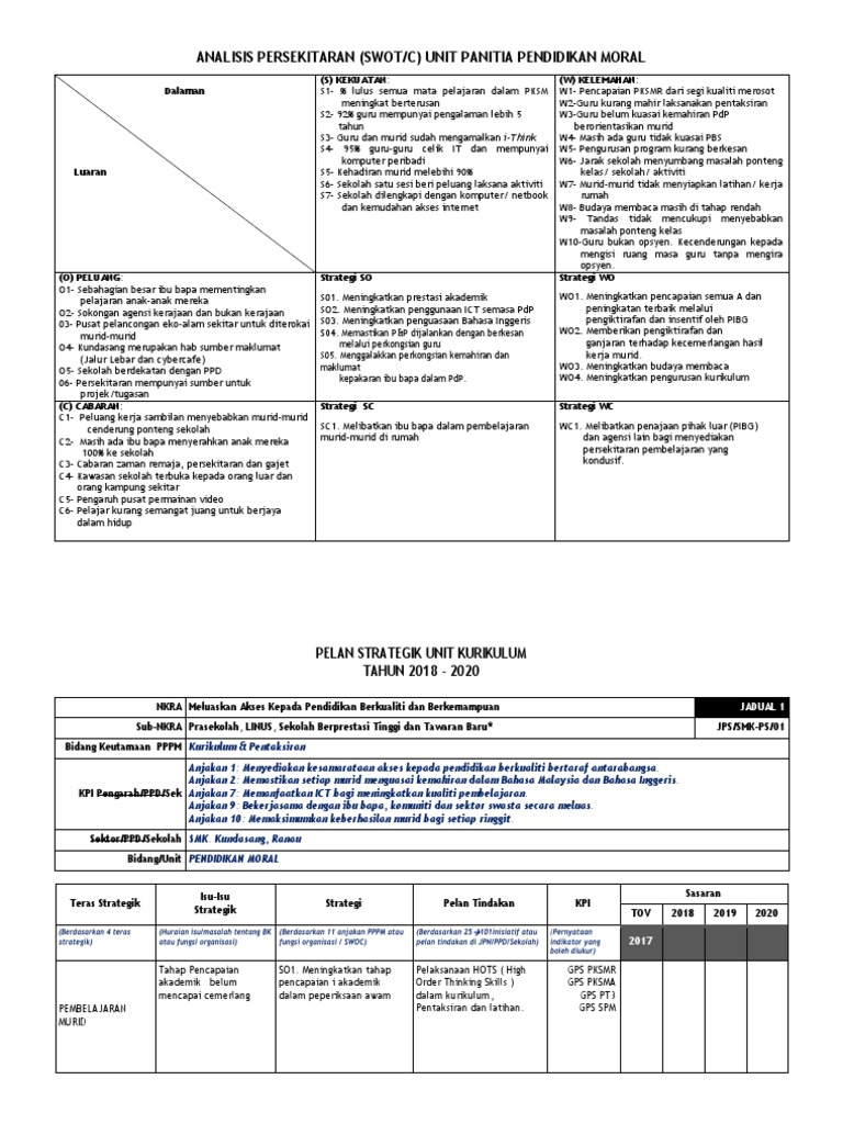 Doc Pelan Strategi 2016 2020 Panitia Pendidikan Moral Smk Limbanak Herald Sajail Academia Edu