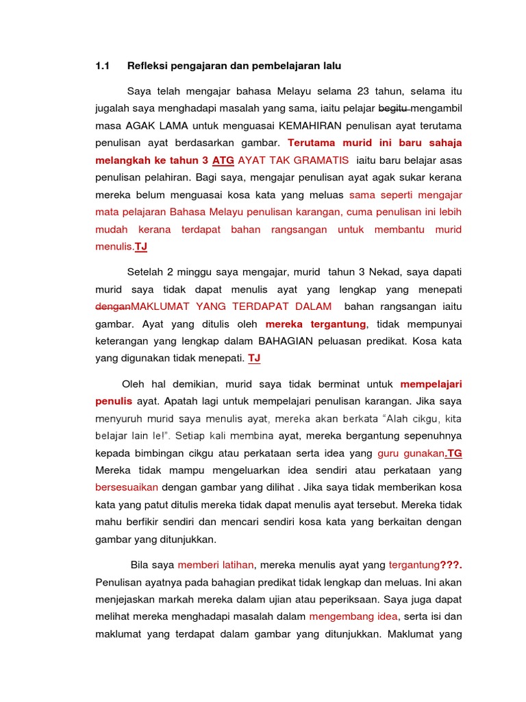 Contoh Penulisan Refleksi Refleksi Sesi Pengajaran Dan Pembelajaran