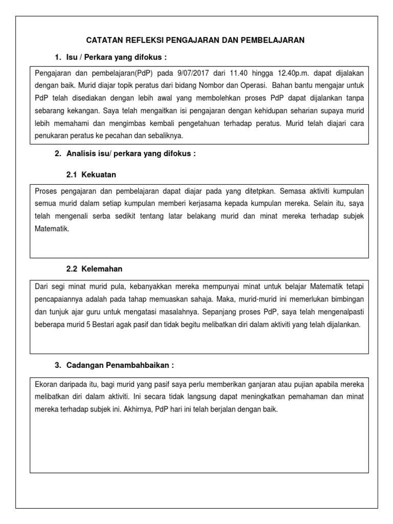 Refleksi Pengajaran Dan Pembelajaran K Prashana Nair Kumaran Academia Edu