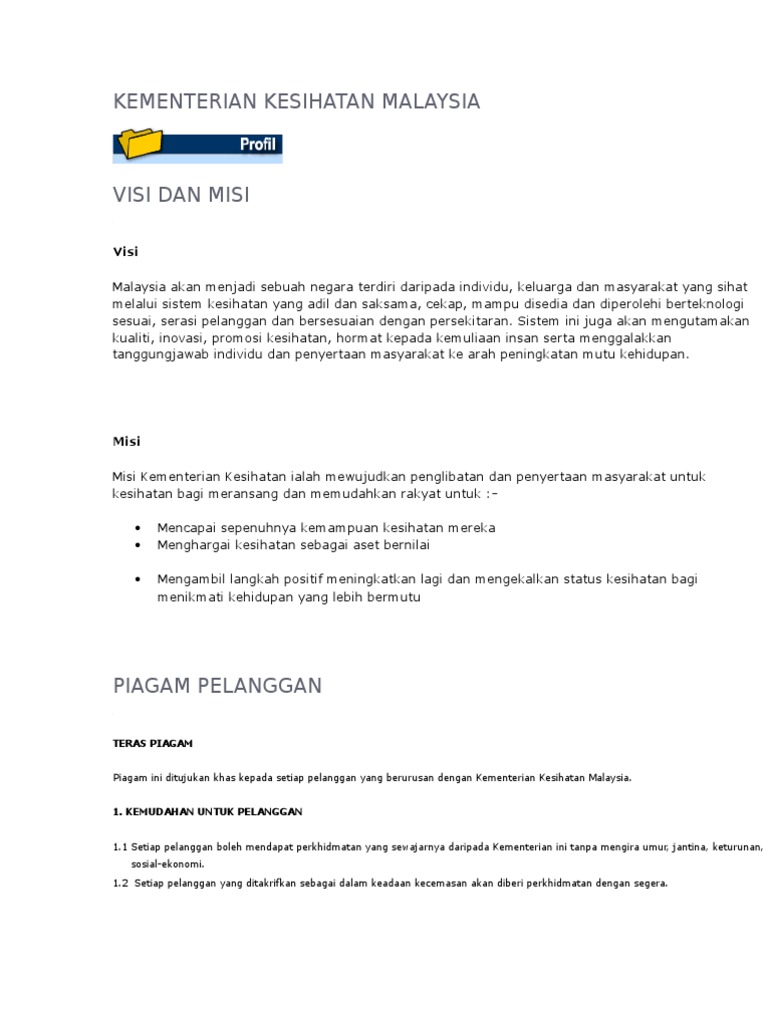 Visi Dan Misi Kementerian Kesihatan Malaysia